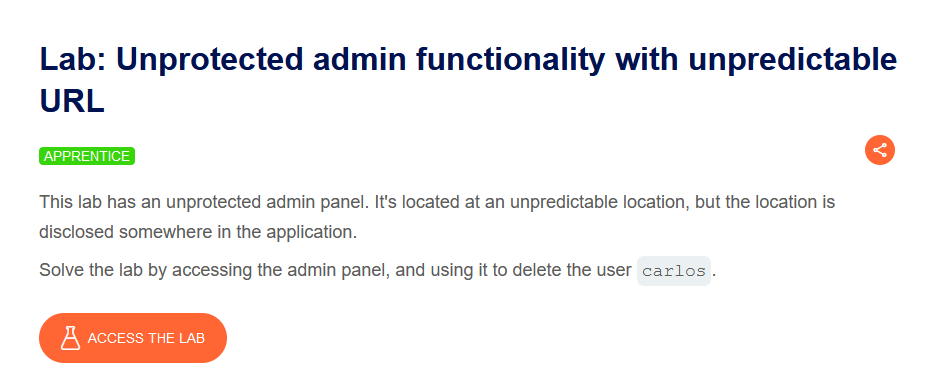 Unprotected Admin Functionality With Unpredictable URL – Lab Outline