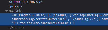 The hint mentioned in the reading material was that the application can leak the URL to users in the JavaScript files. With this in mind, I opened the inspector—this can be done in firefox by right clicking and clicking inspect or by pressting ctrl+shift+c. Then I did a search for the word admin. I came across a script containing ‘adminPanelTag.setAttribute’. Inside of this was ‘/admin-tjf27c’, among other things.